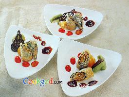 日式烤鳗5条,芹菜250克,蟹柳、威化纸、精制豆皮、紫菜各l包,煎蛋皮13张,猕猴桃、青瓜、珍珠果各250克,白调酱料200克,白芝麻20克,蛋黄液适量