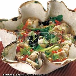 速冻云吞1袋,辣酱1汤匙(15g),海苔6片,油炸黄豆1汤匙(15g),青菜,蘑菇各50g,葱花适量