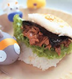 3.米饼中依序夹入生菜、作法1的烧肉、作法2的培根、海苔即可。