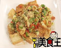 材料:板豆腐3块,葱2根,辣椒2根,蒜头4颗,炒熟白芝麻1大匙,海苔粉1大匙