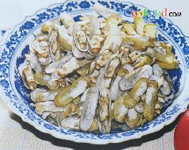 净蛏子500克,葱、姜各15克,料酒25克,精盐4克,白糖10克,味精2克。