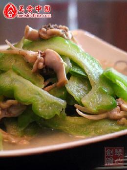 苦(凉)瓜这种天气吃很不错,用它配上海鲜,别有一番风味。广东菜焖鱼经常用到苦瓜,两者的味道结合的非常不错,苦瓜有了鱼的鲜香,非常好吃。俺来个苦瓜浸蛏子吧,也非常不错。