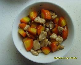 今天外面雪花纷飞,家里暖意融融,突发奇想用胡箩卜作出冬日暖阳的感觉.于是作出这倒菜效果异想不到的好.