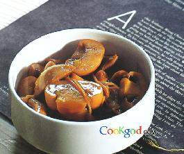 鲜蘑菇也可用温油滑一下,然后再烧制,另有一番滋味。
