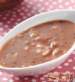 蘑菇片30公克,洋葱末1/2大匙,蒜末1/2小匙,A1牛排酱2大匙,高汤100㏄,面粉1/2大匙,蕃茄酱1大匙