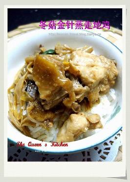 我和老妈一起做的,太好吃了,拌饭一流,冬菇和金针吸收了鸡汁,yeah~~