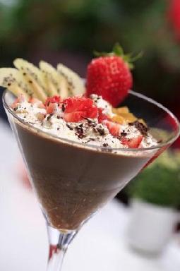 14、晾凉后的咖啡西米布丁非常柔韧,放上各种水果