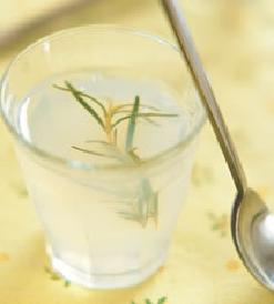 2.将水煮开后放入迷迭香、白砂糖、柠檬汁及洋菜粉,将所有材料煮匀后即可熄火。
