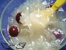 2.放入锅中加水煮至汤水变稠,加入冰糖和洗净的红枣小火再炖约半小时。