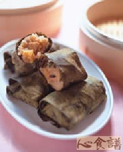 6.将作法4包好的荷叶捲依序放入蒸笼内,以大火蒸12分钟即可。