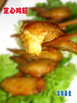 5 10分钟后,把鸡翅从烤箱里拿出.在鸡翅中间塞入少许芝士,翻面继续烤10-15分钟就可以了。前后一共烤20-25分钟。