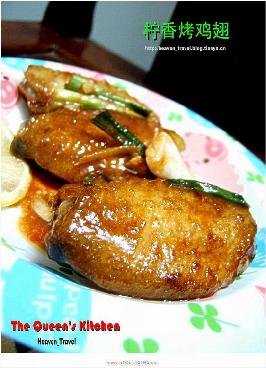 鸡翅,柠檬,李锦记烤肉酱,盐,鸡精,料酒,橄榄油,姜,葱,蒜,迷迭香适量