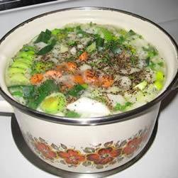 做此汤需要用大锅。所有的原料--防风、白萝卜、大韭菜、胡萝卜、芹菜和莳萝的独特风味混合后,给这款用全鸡炖的汤带来妙不可言的美味。有多余的汤可以冻起来再用。