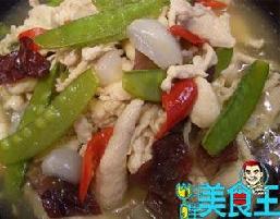 材料:,鸡胸肉400克,辣椒2根,豌豆25克,百合25克,黑木耳50克,蛋1颗,太****适量