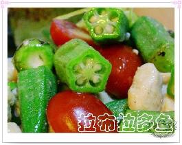 男人的“性”福童话—秋葵鸡肉沙拉自从8世纪摩尔人入侵时带入西班牙后,秋葵在西欧大地有了人工培育。之后进入美洲地区,虽然刚开始只是在很偏北的费城地区有些许种植,但令人惊讶的是,现在最大的秋葵生产地就在那里——美国南部。这缘于美国人对它的独特体会——他们叫它“植物伟哥”。秋葵学名Hibiscus esculentus,别名秋葵夹,羊角豆,是锦葵科一年生草本植物。其营养极其丰富,蛋白质、维生素A、B、C,微量元素应有尽有,是当之无愧的新型保健蔬菜。