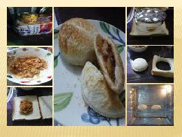 3。用圆形的东西压整出包有陷的面包饺出来