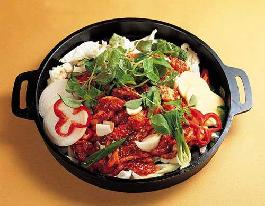 “鸡肉火锅”的作法是,在火上架上浅锅,用鸡油把鸡肉煎一下后,加入用酱油、砂糖(或是日本酱)、日本酒、调味汁等调成的作料汤,然后放进蔬菜、豆腐一起煮,边煮边吃。不同的地区或是家庭也根据各自的嗜好使用鸡肉以外的原料和作料汤。“鸡肉火锅”或是“鸡锅”等是日本寒冷的冬季必不可少的餐食,把炉子放在餐桌上边煮边吃,热热呼呼。火锅的吃法也很简单把原料调理好放在大盘子里,就可以边煮边吃了。 因为火锅不仅有肉,还有大量的蔬菜称得上是健康食品,所以,很受年轻主妇们的喜爱。除鸡腿肉外,还可用鸡肉末搓成鸡肉丸放入火锅,亦别有风味。鸡肉丸要在滚锅时放入,否则,肉丸就会散掉。锅内的鸡肉、鸡肉丸、洋葱等煮好后,将其蘸着搅开的生鸡蛋吃,不爱吃生鸡蛋的话也可不蘸鸡蛋。这样。一边吃以一边往锅里添进肉和蔬菜,锅内汤煮干了,就添入料汤,味道太浓的话,就加如用等量的酒和水调和而成的液体进行调味。最后,在锅汤内加入米饭,并拌上搅开的生鸡蛋,其味甚佳。