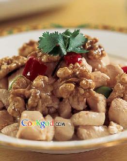 桃仁酥脆,鸡丁滑嫩。炸核桃仁时油温要低,否则核桃仁炸不透、不酥脆。