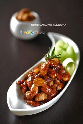 **美国大杏仁是一种非常好的零食。这些年,越来越多的餐厅和主妇将它作为一款给菜品添彩儿的烹饪原料。当然,咱们的这款菜,你可以选用美国大杏仁,也可以用去皮的花生米替代,或其他干果,适合家人口味的就是最好。