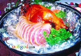 色泽红亮,鸡皮脆香,鸡肉酥嫩,用手撕食,别有风味。
