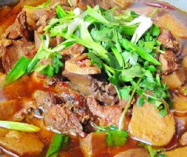 最后,大火收一下汁,撒入味精、葱段、香菜就可以吃了
