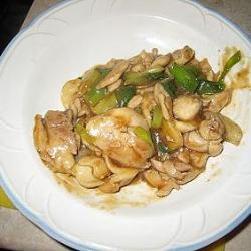 主材:,鸡肉(我用4只鸡大腿)230克,,葱2颗,洗干净,切段,姜片5-6片,略拍,蒜头2片切蓉,植物油适量,腌料:,酱油、生粉、糖、盐、水和油适量,汁料:,生粉2茶匙,蚝油1茶匙,痲油半茶匙,冷水2汤匙