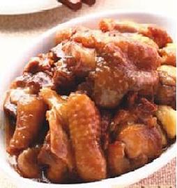 5.放入作法3的鸡腿块、作法1的栗子,以小火烧至栗子松化即可。