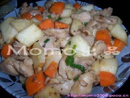 雪梨1个,鸡腿2只,红萝卜1根,葱末适量,蒜末适量,盐适量,生粉适量,料酒适量,生抽适量,生油适量