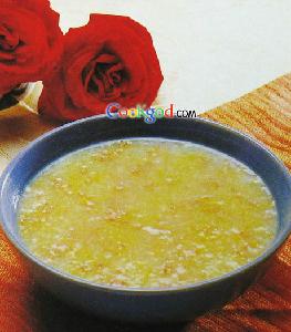 2、净锅上火,放入花生油烧热,烹入绍酒、鸡汤烧沸,放入粟米,用精盐、味精调味,烧开后用湿淀粉勾芡,将鸡蓉倒入搅匀,煮熟后离火,撒少许胡椒粉推匀,倒入汤碗中,撒一层火腿蓉即成。