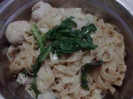 2.锅放水煮开加入面条煮熟,捞出放碗里,加入煮熟的肉片,肉丸,青菜,沙茶酱拌匀即可。