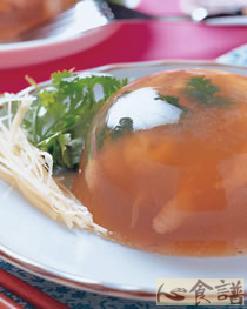 4.将作法2的鸡脚及作法3的姜片、葱段及洋菜与所有调味料一起放入碗盅拌匀。