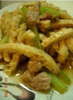 香干,西芹,油,肉,酱油,糖,盐,鸡精,水,淀粉