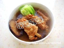 猪肋排500克,油菜心4颗,干香菇6朵,大蒜10粒,桂皮1根,丁香3粒,白胡椒粒1茶匙5G,枸杞2茶匙10g,八角2粒,甘草3g,陈皮2片,桂圆干2个,老抽1汤匙15ml,盐1茶匙5G