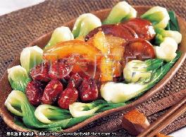 金丝小枣用热水泡发,大火蒸制30分钟,锅中放入白砂糖,用小火慢慢熬成糖汁,再调入水淀粉勾成糖汁芡,随后放入金丝小枣兜匀,摆入盘中一端。