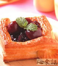 丹麦面包基础面糰1份,樱桃果酱250公克,樱桃20颗,全蛋1个