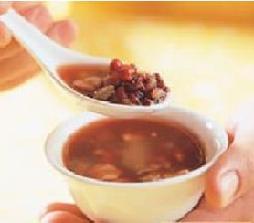 紫糯米洗净泡水6小时后沥干水分,放入不?钢容器中加水2000㏄及红砂糖,先用强火加热至沸腾后,改中火加热20分钟,再加入其他材料,以弱火煮40分钟即可。