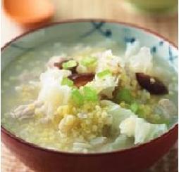 小米100公克,大麦片50公克,白木耳5公克,黑木耳5公克,猪瘦肉丁60公克,水1200㏄,姜片10公克,鸡粉1/4小匙,盐1/4小匙