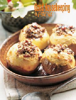 ●4个大苹果(大约每个600克)●1/4杯红砂糖●1/4杯速溶燕麦片●2匙红枣,剁碎●1/2匙桂皮粉●2匙黄油(或人造黄油)