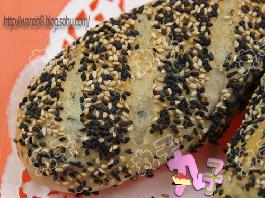 高粉373g,裸麦粉80g,酵母6G,盐10g,麦芽精2g,水380ml,橄榄油30ML,亚麻籽20G,装饰用黑白芝麻