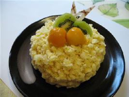 这是一款即便没有烤箱也能做的蛋糕,外形借鉴于一个意大利蛋糕连锁店出品。那家店中这款小小的芒果蛋糕,价格竟在百元以上,尝试过一次后念念不忘。 自己动手做一个?打蛋、拌面糊、还要洗一堆盆盆罐罐,太麻烦了。。。懒人总会想出替代方法的!