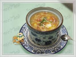 1.用粗孔刨板把玉米擦碎能使汤味更加鲜美,如果用玉米罐头的话可以用搅拌机以点动方式打碎。 2.用牛至粉纯属个人爱好,是用来代替鸡精的。