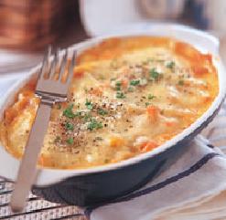 3.将咖哩饭盛入烤盅,表面撒上拉丝乳酪备用。