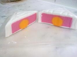 3- 用200ml椰漿加橙色香油攪勻.(視乎個模大細而定).倒入圓模內.雪至凝固.