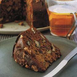去核枣干140克,剁碎,黄油或者人造黄油2汤匙,小苏打粉1茶匙,热开水240毫升,不太甜的红糖3/4杯,鸡蛋2个,面粉240克,发酵粉2茶匙,南瓜饼调味品11/2茶匙,盐少量,核桃60克,剁碎