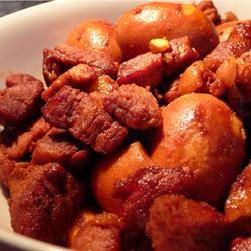 很喜庆的名字,其实就是红烧肉炖鸡蛋,这道菜中最受欢迎的是鸡蛋,因为它把其他材料的味道都牢牢吸收住了。