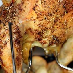 4.在烤箱里把鸡烘烤20分钟。然后转温度为200度再继续烤40分钟直至鸡肉里面温度达85度。取出烤箱后放置10-15分钟即可。