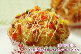 1、也可把配料先摆在刷了蛋液的面团上再发酵,临烤前挤上色拉酱。烤完色拉酱会融化,可按个人喜欢好吃临时再挤一些。