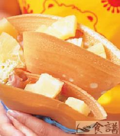 3.再撒上黑胡椒,放入凤梨,最后淋上作法1备妥的酱料。