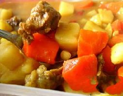 5.炒锅置小火上,加适量猪油,下入咖喱粉,用温水炒熟,投入洋葱丝略炒,随即将牛肉从锅中捞出,剔除葱、姜,再添入牛肉汤,加精盐,味精,调好口味,用小火煨炖,至肉质酥烂时,用湿淀粉勾芡,加入猪油,用手勺翻动,即可装盘。