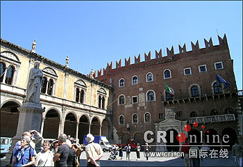 无需借助地图也能毫不费劲地找到市中心的布拉广场(Piazza Bra),绕过广场中央的古罗马竞技场(Arena),顺着浅红色大理石铺就的“马志尼”步行街(Via Mazzini)继续向前,不远处就是古色古香的绅士广场(Piazza dei Signori)和香草广场(Piazza Erbe)。很难想象夏季的竞技场内白天游人密布,夜晚歌舞喧阗的场面。隔了两千年,古罗马的斗兽场变成了露天歌剧院,不一样的戏,不一样的看客和演员,仍然一代代继续演下去。近年这里反复上演的一出戏是威尔第的作品《阿伊达》,一个以古埃及为背景的爱情悲剧,场面浩大,气氛热烈,剧情却是以男女主人公双双殉情终结──优美,隽永,有着无限的感伤。